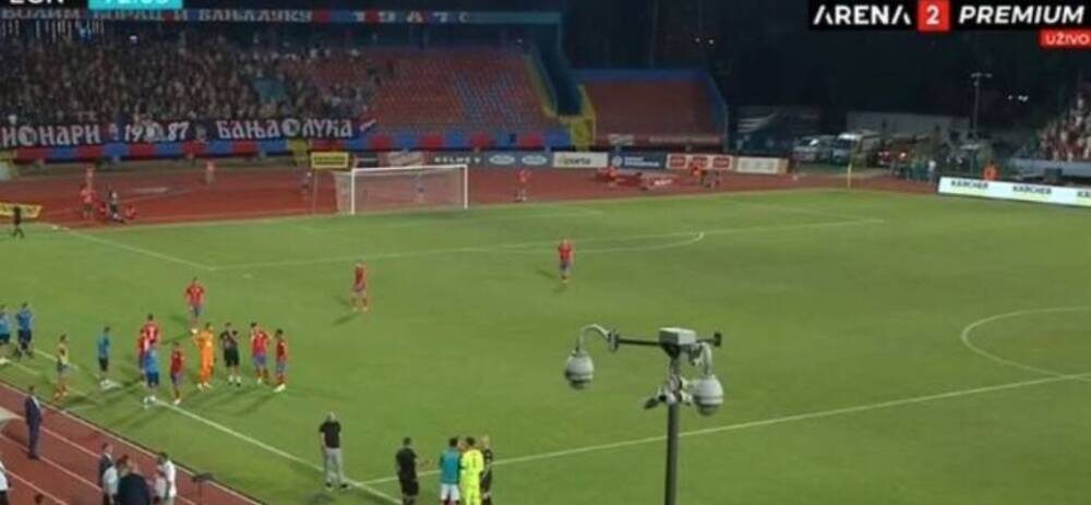 Меч је био прекинут у 70. минуту пошто су гостујући играчи одлучили да се повуку са терена после скандирања домаћих навијача „Косово-Србија“.