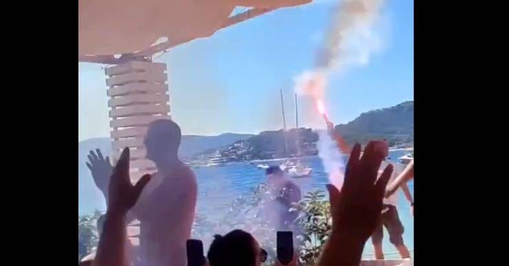 Тако је на друштвеним мрежама освануо снимак славља са једне плаже у Херцег Новом, где су окупљени српски навијачи пратили из минута у минут меч у Паризу и здушно навијали са „делфине“. Када је утакмица завршена уследила је права фешта, пошто су окупљени запалили бакље, док је са звучника пуштен хит „Кад сам био мали“ од Баје Малог Книнџе.