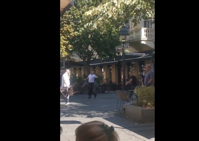 Момак је у Кнез Михаиловој ножем напао особље ресторана Снежана. Једна особа је избодена. Полицајац се случајно затекао и онеспобио момка. Приведен је.“