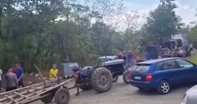Тако су у селу Риђевштица, недалеко од средњевековног манастира Велуће али и фабрике воде, мештани околних села зауставили машине.