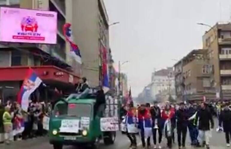 Nišlije na dočeku studenata iz Kragujevca (VIDEO) pic.twitter.com/gZzOp5Cbtu
