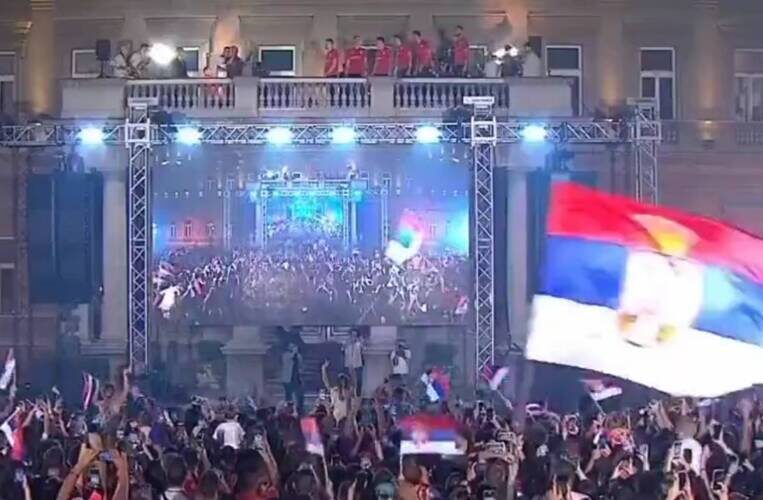 Испред зграде Скупштине града Београда окупило се неколико десетина хиљада људи како би поздравили Новака Ђоковића, ватерполисте, стрелце због златних медаља, Александру Перишић због сребра у теквондоу, те бронзане кошаркаше, а они су искористили прилику да пошаљу јаку поруку.