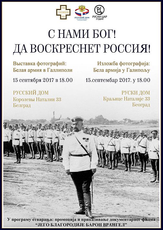 15. септембра 2017. године, са почетком у 18 часова, у Руском Дому у Београду биће отворена изложба „С нама је Бог! Да васкрсне Русија!“, посвећена херојима Белог покрета и њиховом оданом служењу Русији, у својој земљи и у иностранству.