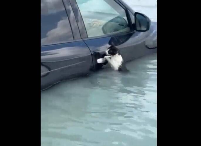 Heavy flooding in Dubai, Hero saved that cat🫡Pray for Dubai 🇦🇪pic.twitter.com/6JBU3PD3Po